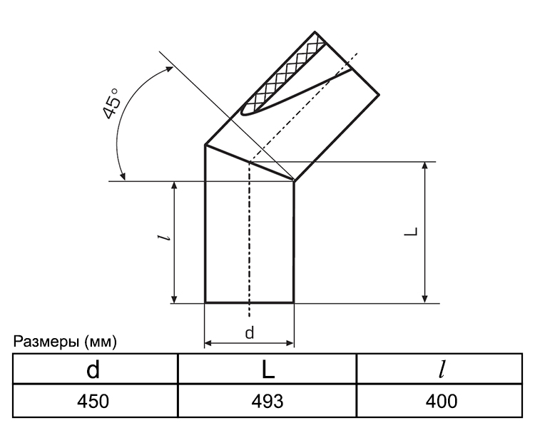 Отвод 450 мм SDR11 45° ПЭ100 сварной сегментный ПНД
