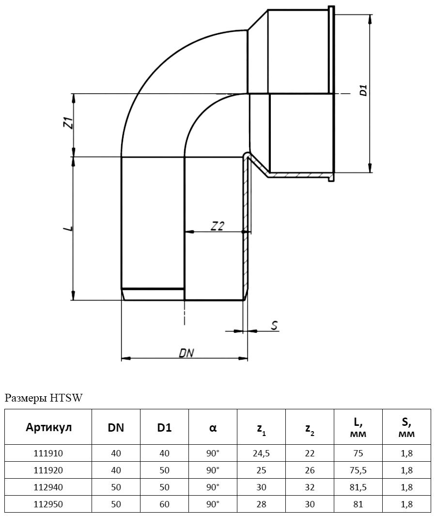Отвод сифонный PP-H Ostendorf HT HTSW DN 40/40х90°