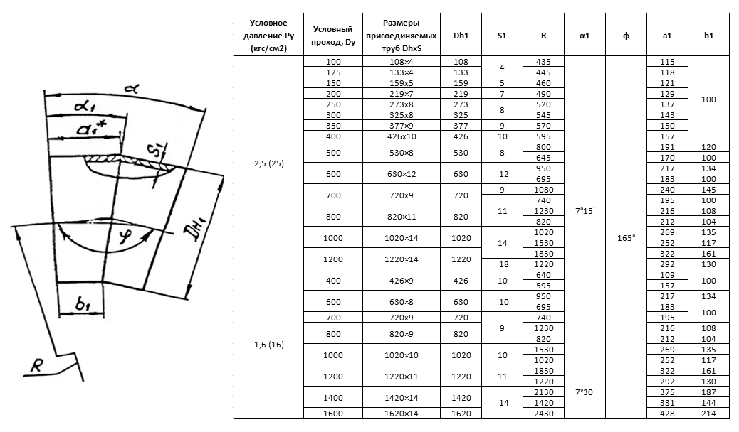 Отвод стальной 15° 219х7 ОСТ 34.10-752-97 сварной секционный