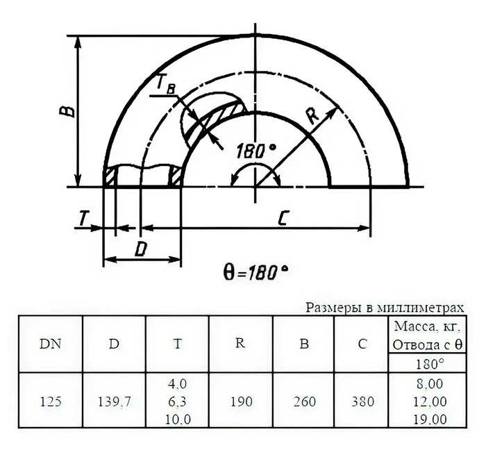 Отвод стальной 180-1-139,7х6,3-12Х18Н10Т ГОСТ 17375-2001 бесшовный крутоизогнутый