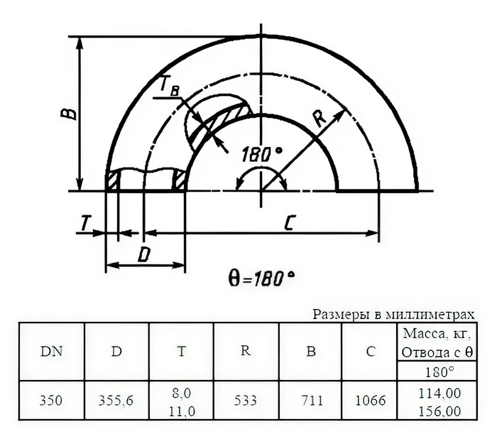 Отвод стальной 180-1-355,6х11-12Х18Н10Т ГОСТ 17375-2001 бесшовный крутоизогнутый