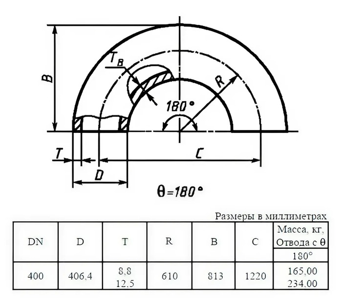 Отвод стальной 180-1-406,4х8,8-09Г2С ГОСТ 17375-2001 бесшовный крутоизогнутый