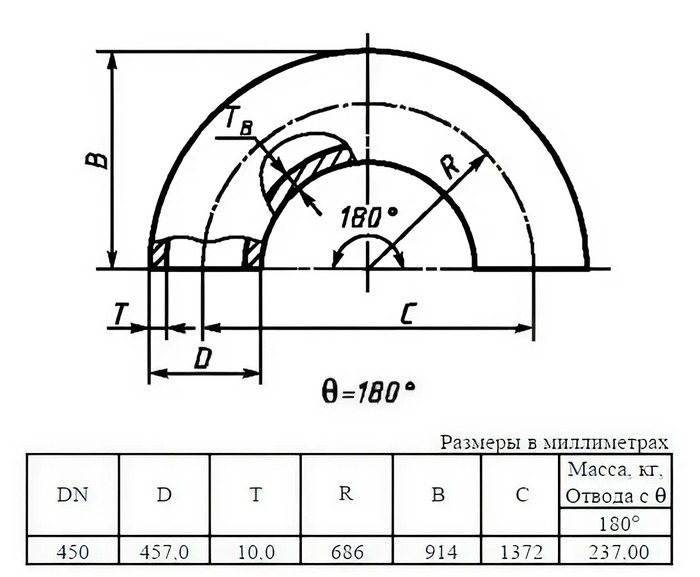 Отвод стальной 180-1-457х10-Ст.20 ГОСТ 17375-2001 бесшовный крутоизогнутый
