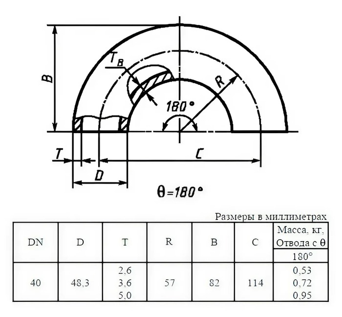 Радиус изгиба57 мм