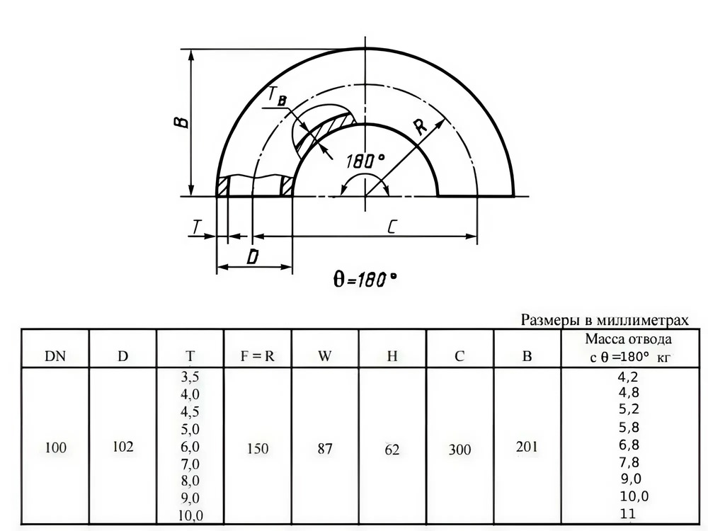 Отвод стальной 180-2-102х4-12Х18Н10Т ГОСТ 17375-2001 бесшовный крутоизогнутый