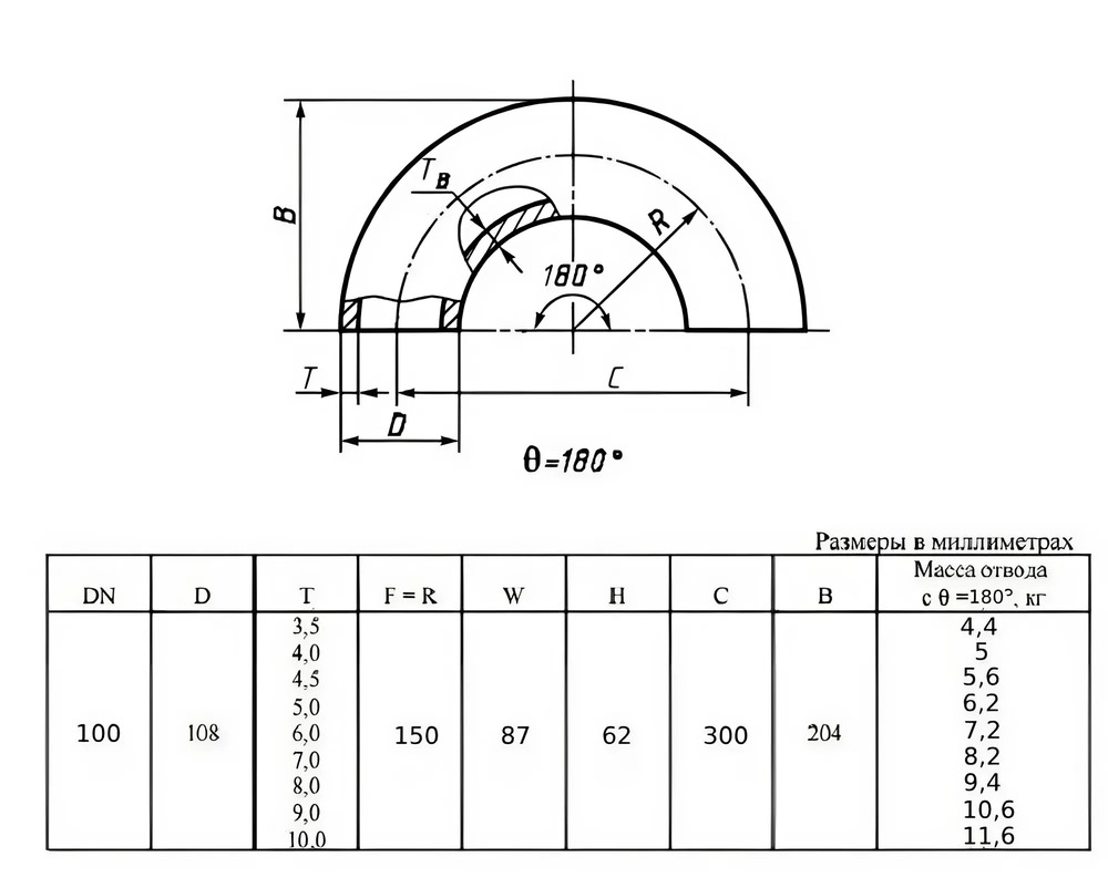 Отвод стальной 180-2-108х3,5-09Г2С ГОСТ 17375-2001 бесшовный крутоизогнутый