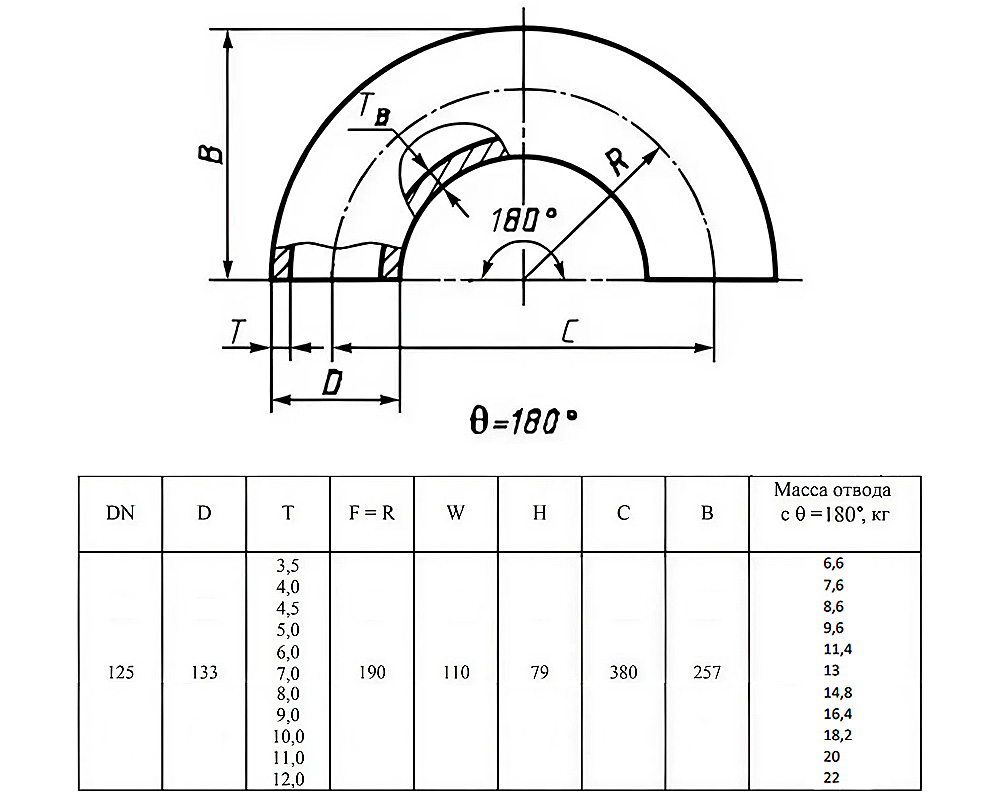 Отвод стальной 180-2-133х8-Ст.20 ГОСТ 17375-2001 бесшовный крутоизогнутый