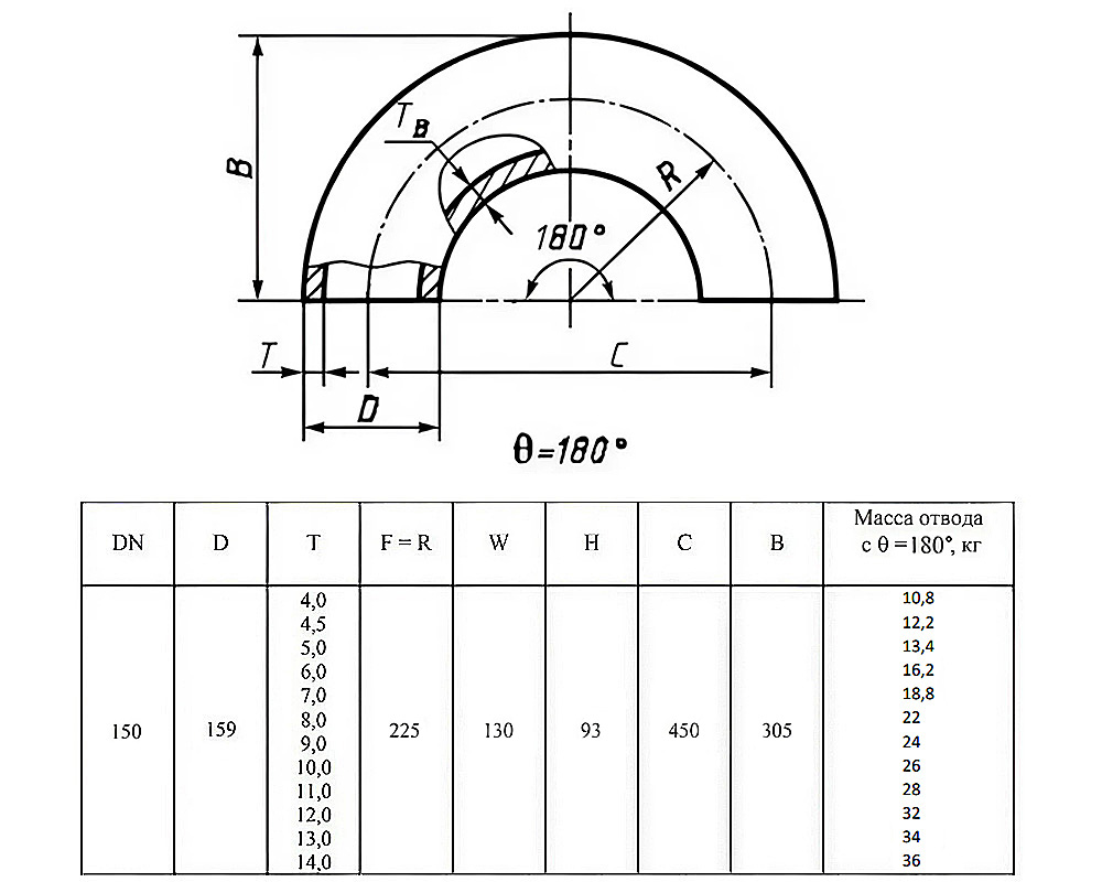 Отвод стальной 180-2-159х10-Ст.20 ГОСТ 17375-2001 бесшовный крутоизогнутый