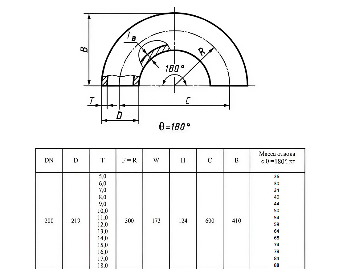 Отвод стальной 180-2-219х14-09Г2С ГОСТ 17375-2001 бесшовный крутоизогнутый