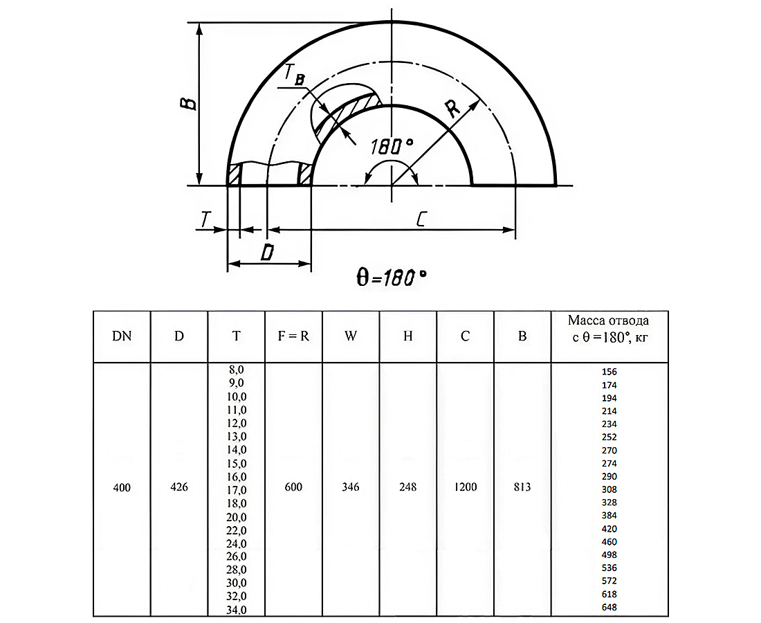 Отвод стальной 180-2-426х34-Ст.20 ГОСТ 17375-2001 бесшовный крутоизогнутый