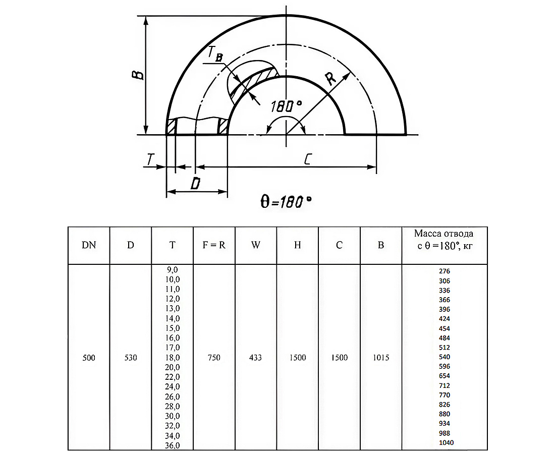 Отвод стальной 180-2-530х11-09Г2С ГОСТ 17375-2001 бесшовный крутоизогнутый