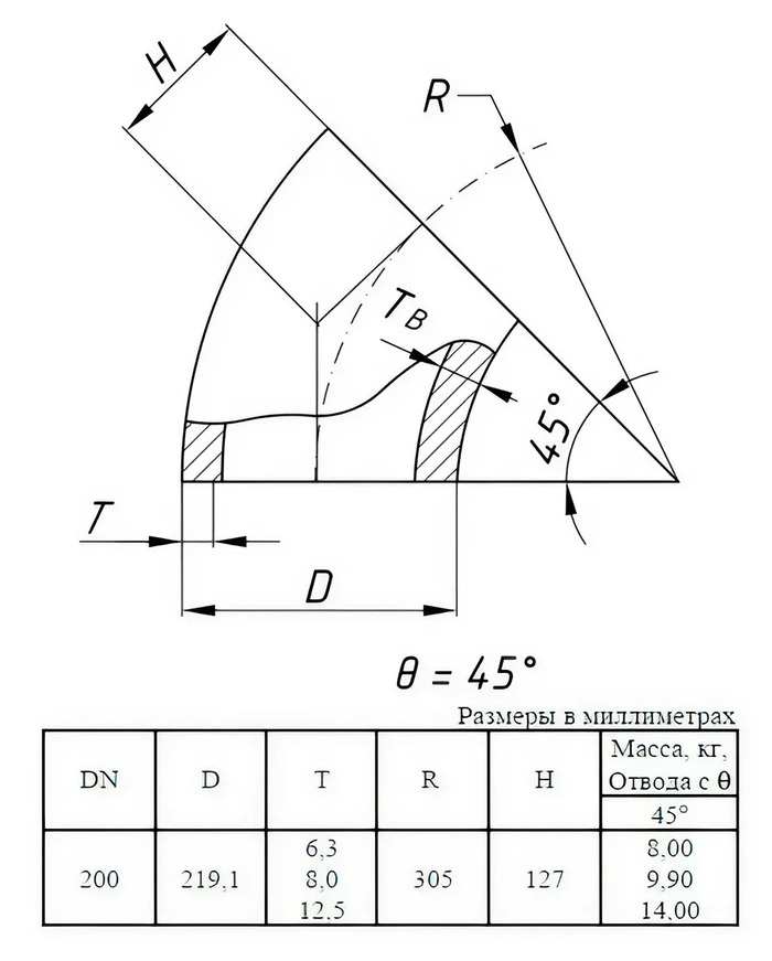 Отвод стальной 45-1-219,1х6,3-12Х18Н10Т ГОСТ 17375-2001 бесшовный крутоизогнутый
