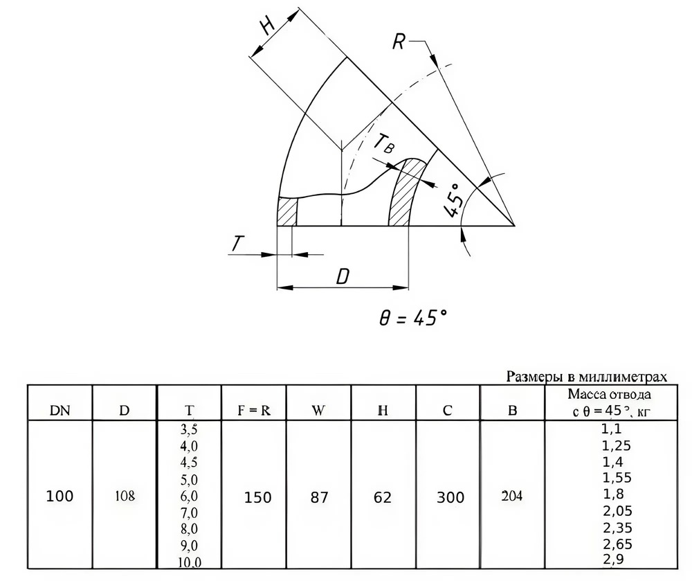 Отвод стальной 45-2-108х9-12Х18Н10Т ГОСТ 17375-2001 бесшовный крутоизогнутый