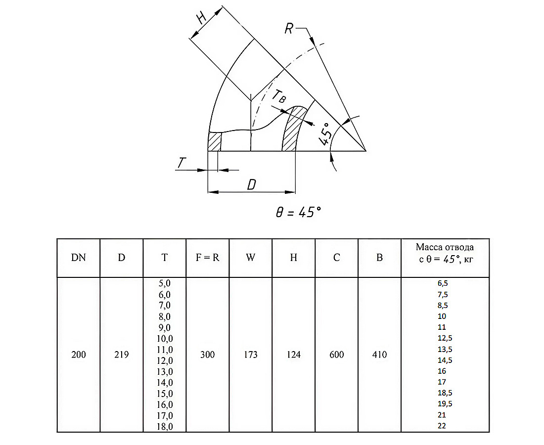 Отвод стальной 45-2-219х17-12Х18Н10Т ГОСТ 17375-2001 бесшовный крутоизогнутый
