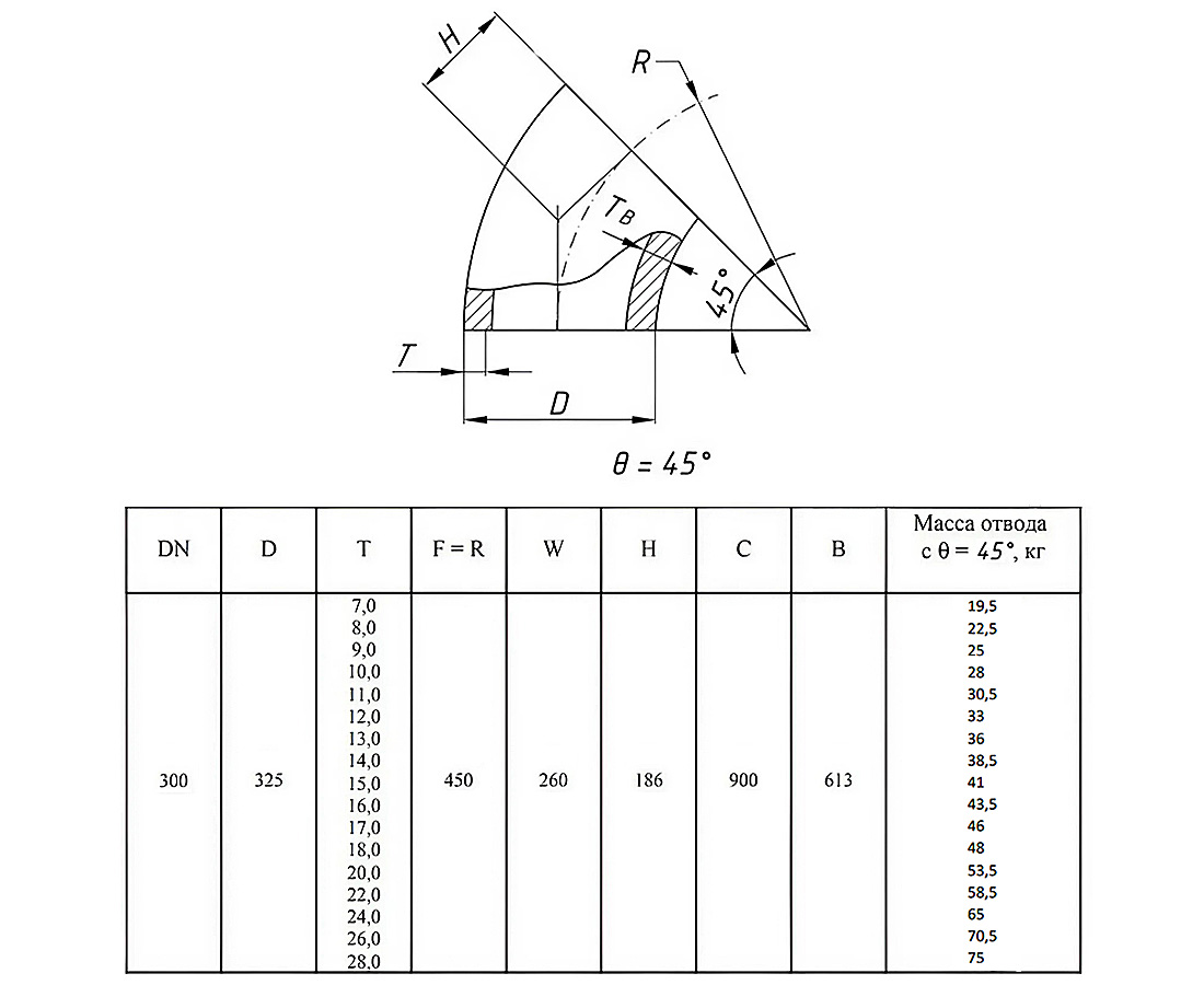 Отвод стальной 45-2-325х20-12Х18Н10Т ГОСТ 17375-2001 бесшовный крутоизогнутый