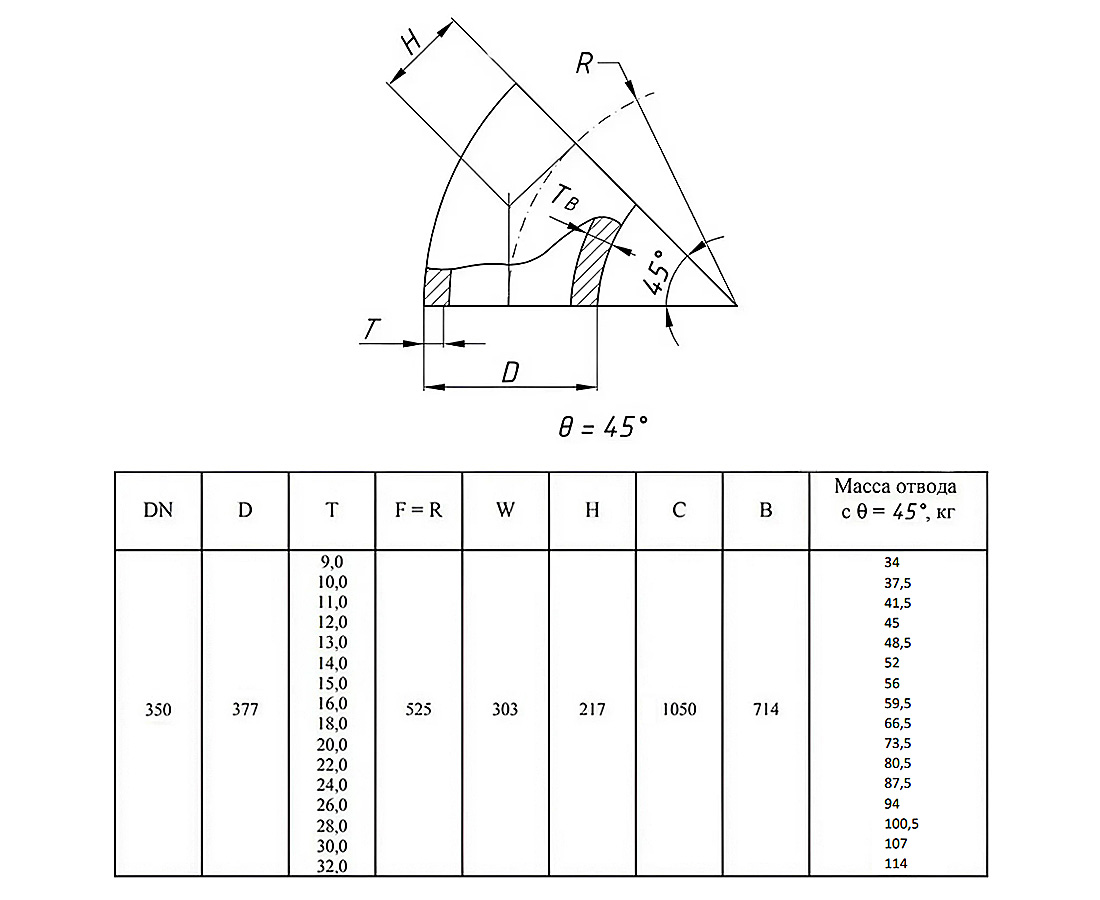 Отвод стальной 45-2-377х10-09Г2С ГОСТ 17375-2001 бесшовный крутоизогнутый