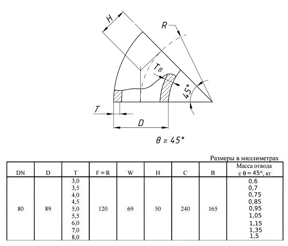 Отвод стальной 45-2-89х3,5-09Г2С ГОСТ 17375-2001 бесшовный крутоизогнутый