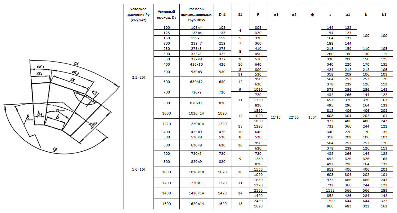 Отвод стальной 45° 1020х10 ОСТ 34.10-752-97 сварной секционный