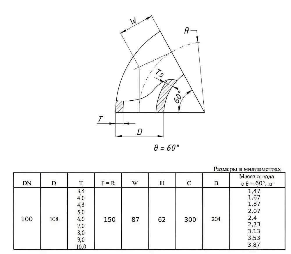 Отвод стальной 60-2-108х7-Ст.20 ГОСТ 17375-2001 бесшовный крутоизогнутый