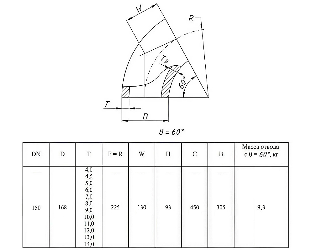 Отвод стальной 60-2-168х4-Ст.20 ГОСТ 17375-2001 бесшовный крутоизогнутый
