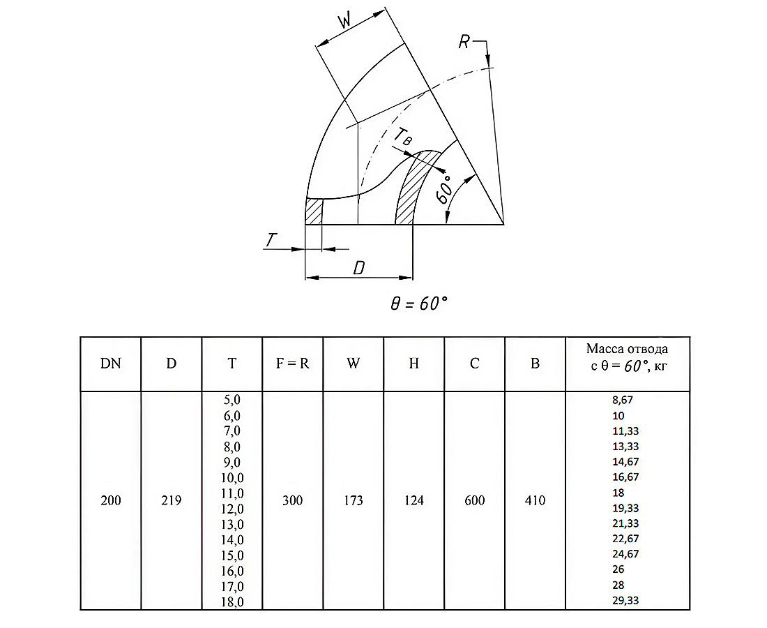 Отвод стальной 60-2-219х14-Ст.20 ГОСТ 17375-2001 бесшовный крутоизогнутый
