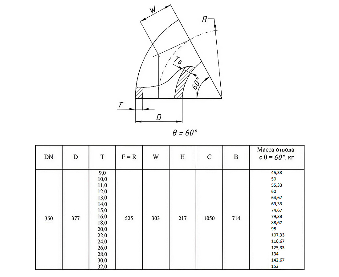 Отвод стальной 60-2-377х14-Ст.20 ГОСТ 17375-2001 бесшовный крутоизогнутый