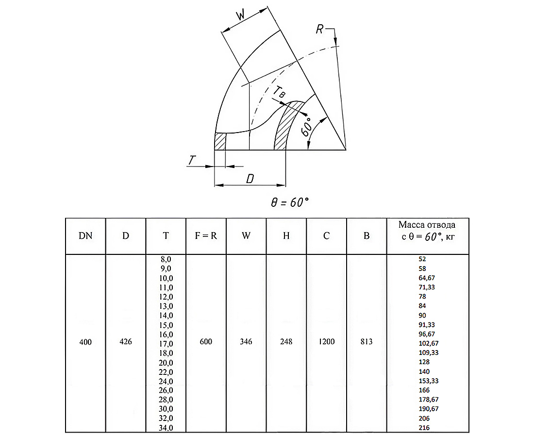 Отвод стальной 60-2-426х12-Ст.20 ГОСТ 17375-2001 бесшовный крутоизогнутый