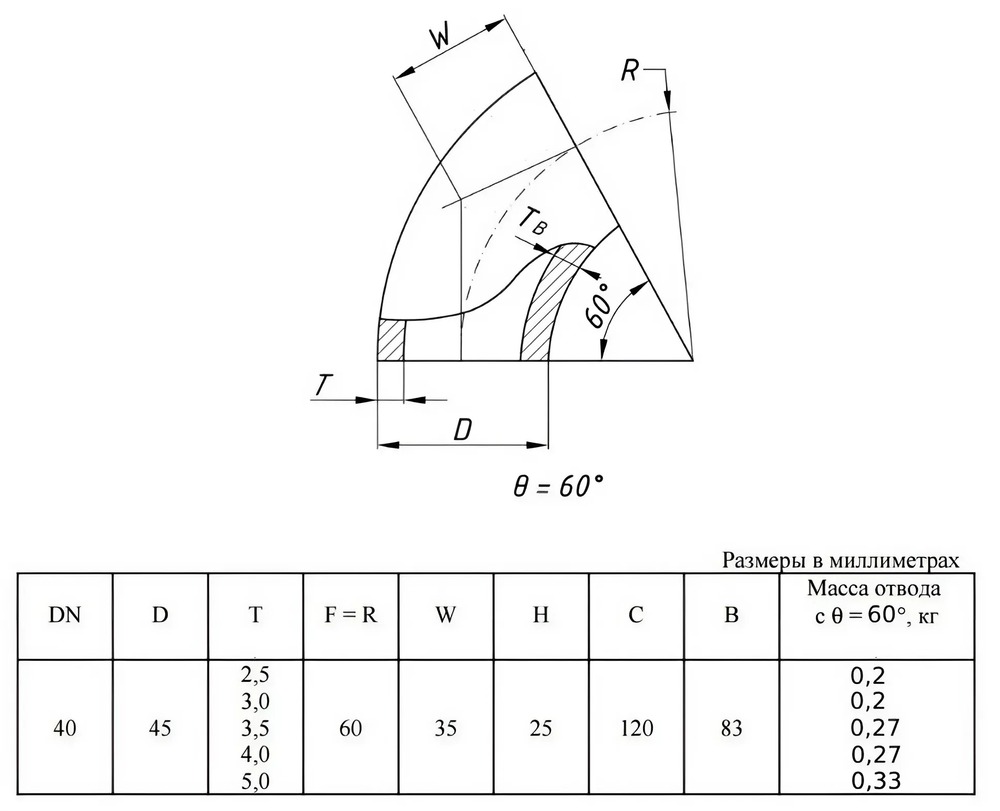 Отвод стальной 60-2-45х3,5-09Г2С ГОСТ 17375-2001 бесшовный крутоизогнутый