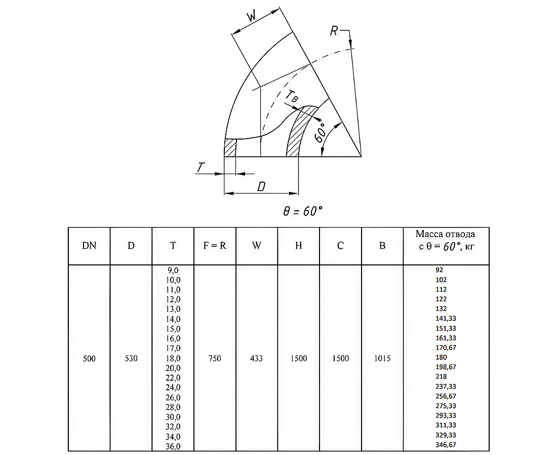 Отвод стальной 60-2-530х14-12Х18Н10Т ГОСТ 17375-2001 бесшовный крутоизогнутый