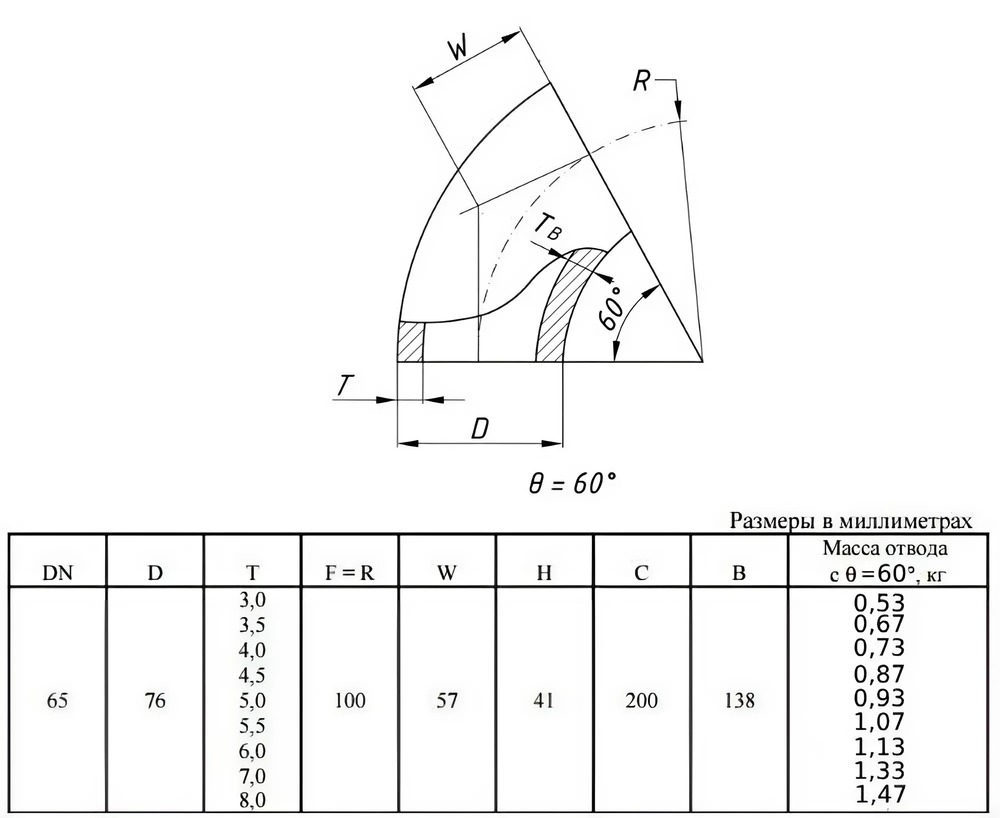 Отвод стальной 60-2-76х4,5-Ст.20 ГОСТ 17375-2001 бесшовный крутоизогнутый