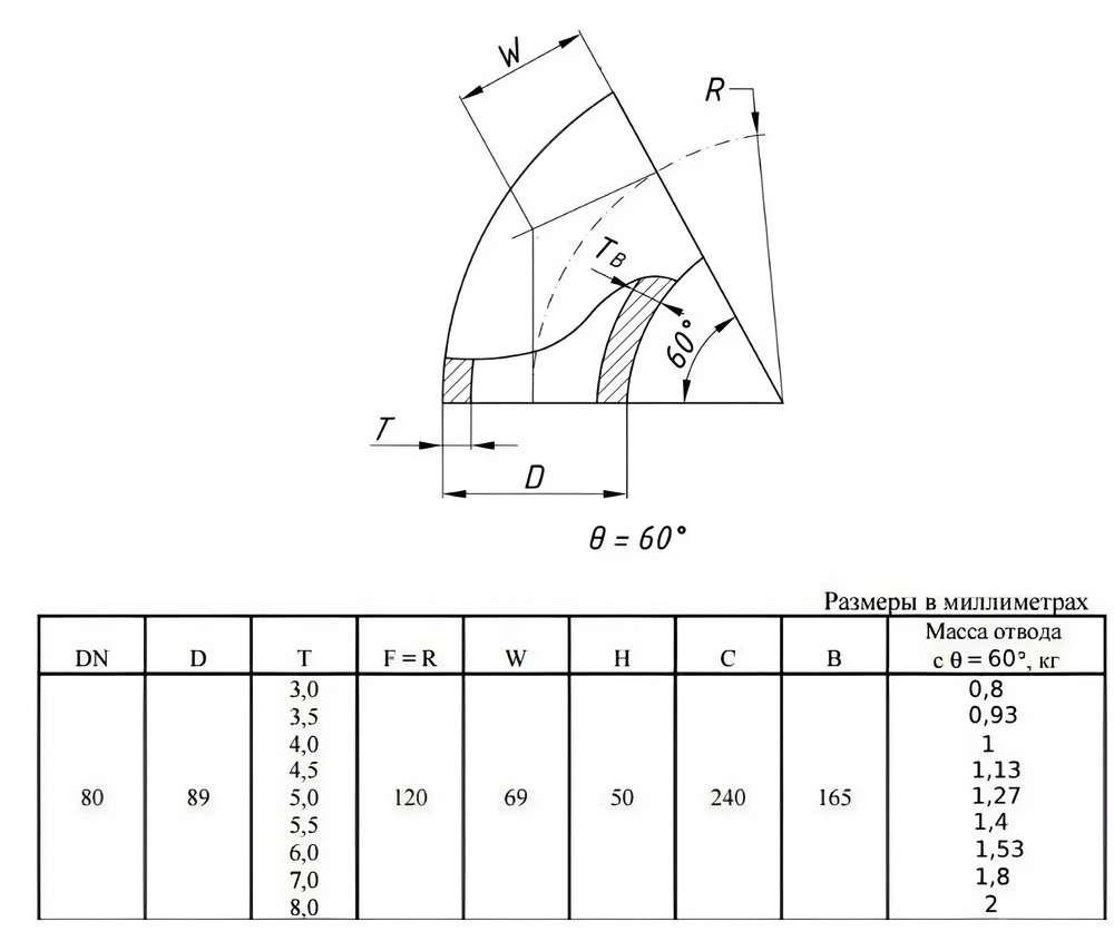 Отвод стальной 60-2-89х5-Ст.20 ГОСТ 17375-2001 бесшовный крутоизогнутый