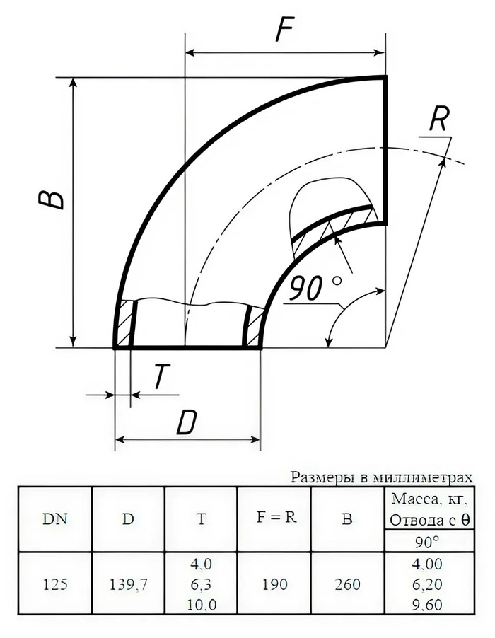 Отвод стальной 90-1-139,7х6,3-12Х18Н10Т ГОСТ 17375-2001 бесшовный крутоизогнутый