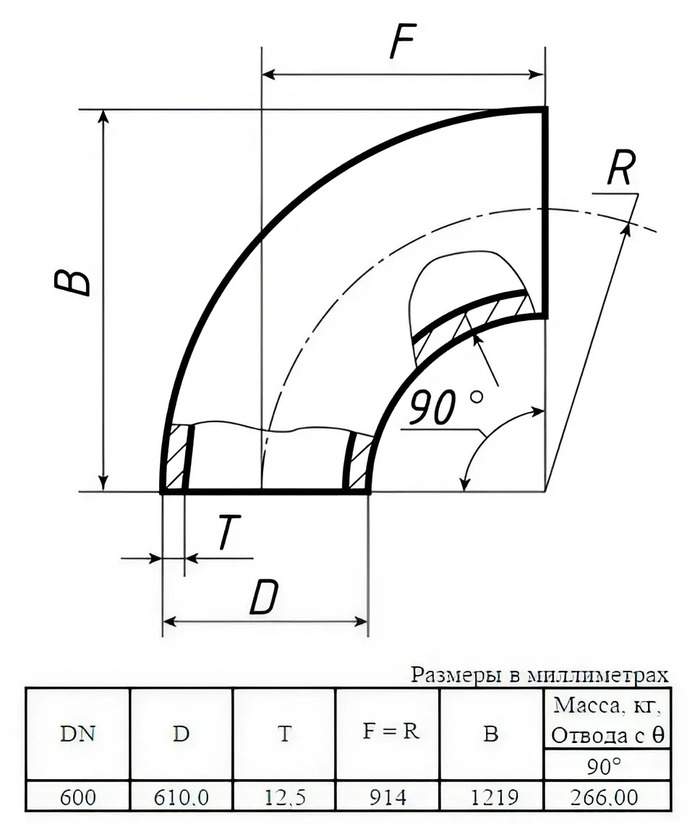 Отвод стальной 90-1-610х12,5-09Г2С ГОСТ 17375-2001 бесшовный крутоизогнутый