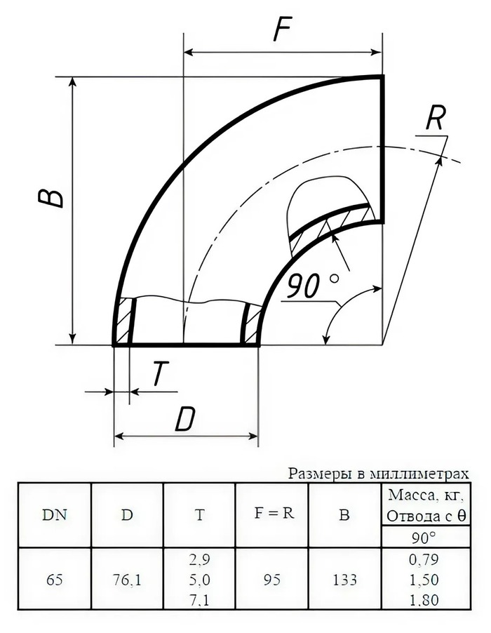 Радиус изгиба95 мм