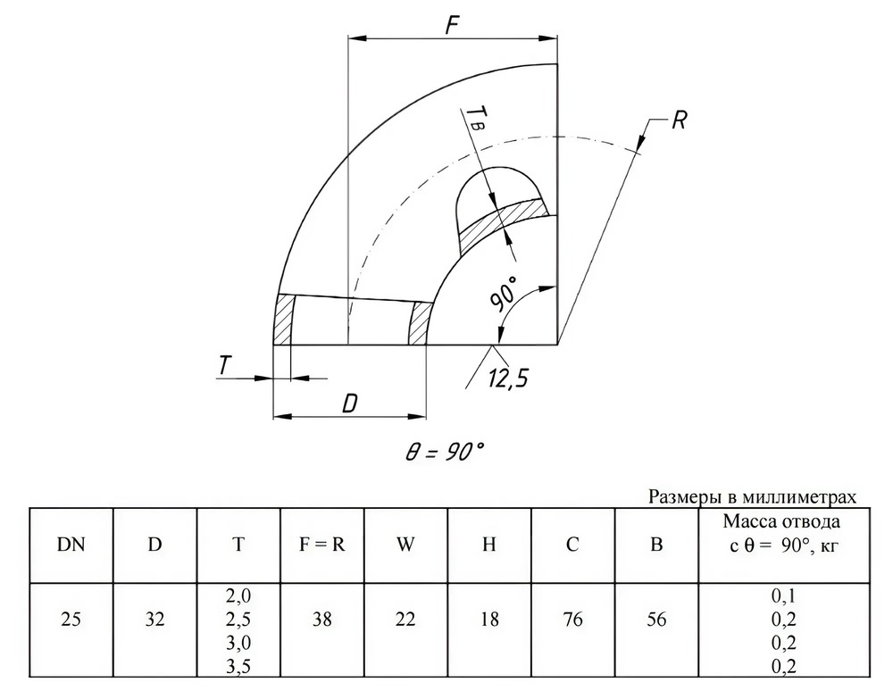 Отвод стальной 90-2-32х3,5-12Х18Н10Т ГОСТ 17375-2001 бесшовный крутоизогнутый
