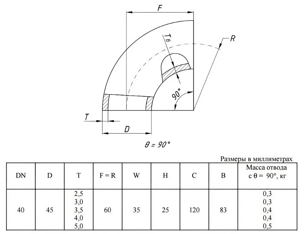 Отвод стальной 90-2-45х3,5-09Г2С ГОСТ 17375-2001 бесшовный крутоизогнутый