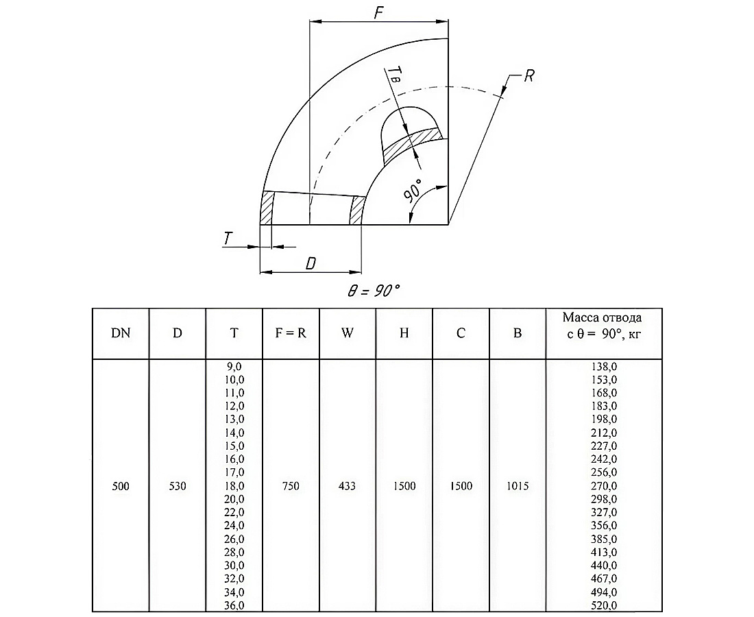Отвод стальной 90-2-530х13-Ст.20 ГОСТ 17375-2001 бесшовный крутоизогнутый