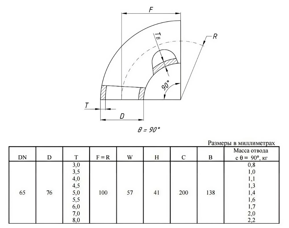 Отвод стальной 90-2-76х7-09Г2С ГОСТ 17375-2001 бесшовный крутоизогнутый