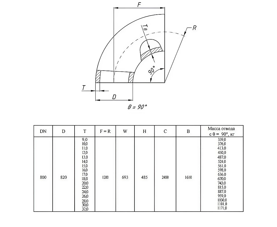 Отвод стальной 90-2-820х24-09Г2С ГОСТ 17375-2001 бесшовный крутоизогнутый