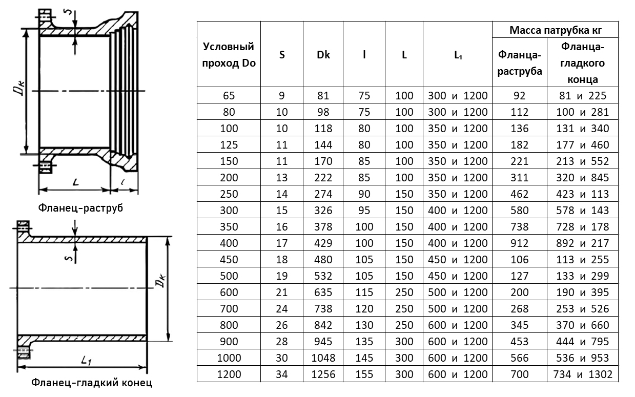 Патрубок ПФГ Ду 700 ВЧШГ ГОСТ 5525-88 чугунный фланец-гладкий конец
