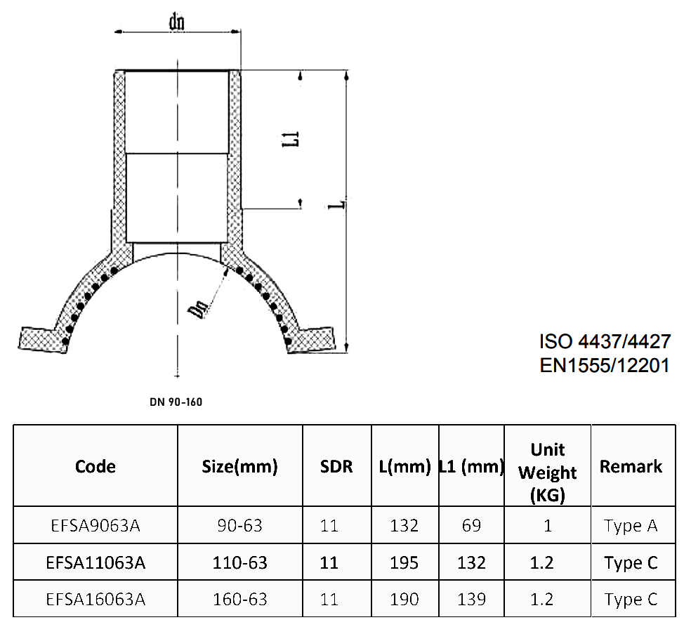 Патрубок-накладка 110х63мм SDR 11 SMART-JOINT ПЭ100 электросварной