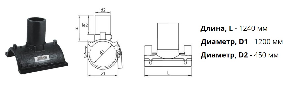 Патрубок-накладка э/с 1200х450 мм SDR 11 ПЭ 100 электросварной