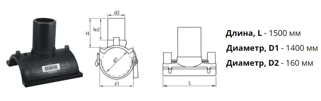 Патрубок-накладка э/с 1400х160 мм SDR 11 ПЭ 100 электросварной