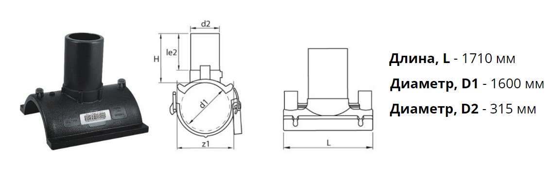 Патрубок-накладка э/с 1600х315 мм SDR 11 ПЭ 100 электросварной