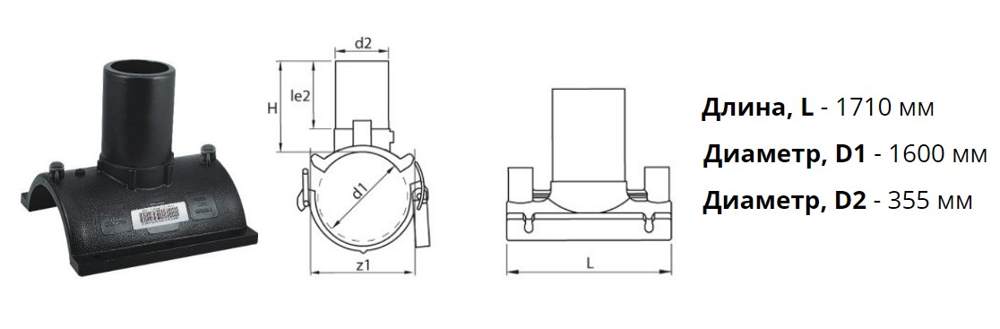 Патрубок-накладка э/с 1600х355 мм SDR 11 ПЭ 100 электросварной