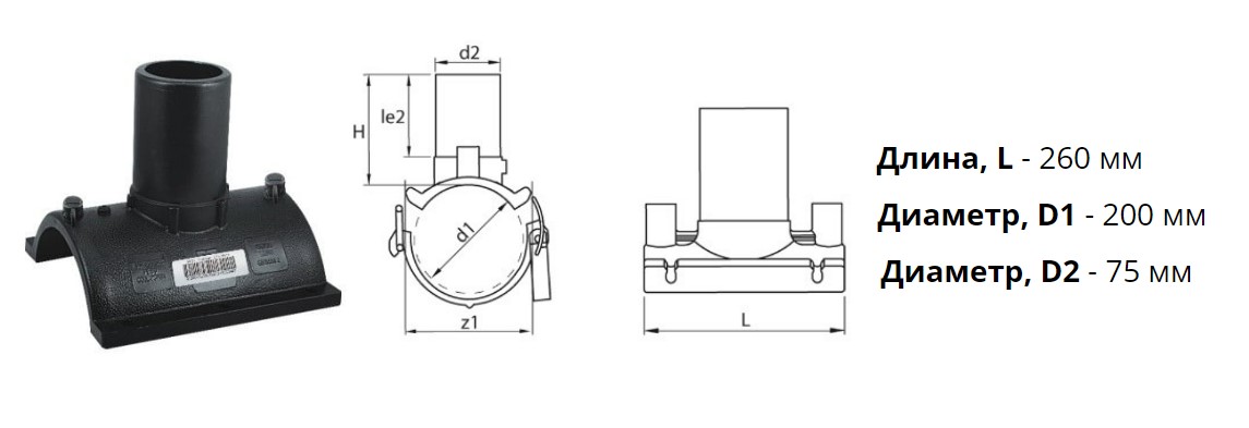 Патрубок-накладка э/с 200х75 мм SDR 11 ПЭ 100 электросварной