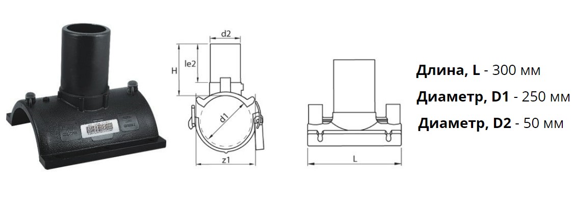 Патрубок-накладка э/с 250х50 мм SDR 11 ПЭ 100 электросварной