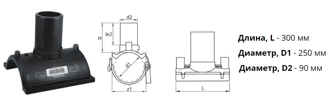 Патрубок-накладка э/с 250х90 мм SDR 11 ПЭ 100 электросварной