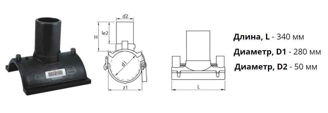 Патрубок-накладка э/с 280х50 мм SDR 11 ПЭ 100 электросварной