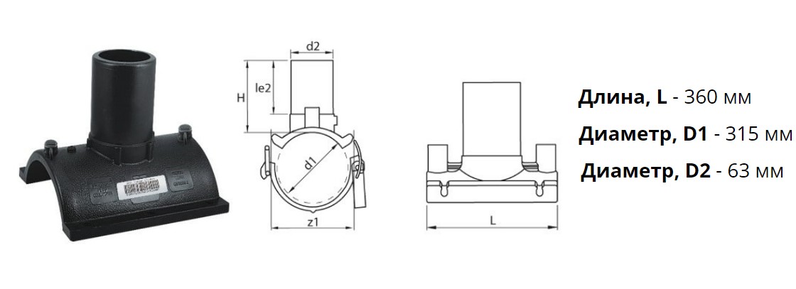 Патрубок-накладка э/с 315х63 мм SDR 11 ПЭ 100 электросварной